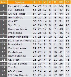O Pedroso venceu a AD Vitrine no passado domingo e cumpriu a obrigação para poder festejar a subida de divisão. Contudo, o espectro do jogo entre o Cerco do Porto e o Vila FC, que não se chegou a realizar por desacatos à chegada do clube gaiense ao Complexo Desportivo de Campanhã, continua a pairar no ar, tudo porque, caso a AF Porto decida pela realização do jogo e o Vila FC vença, o Pedroso fica mais uma vez de fora das contas da subida de divisão. Isto porque a equipa terminou em igualdade pontual com o Cerco do Porto e o Atl. Rio Tinto e segundo os regulamentos da AF Porto, no seu ponto 100.02, alínea A, refere que o desempate será feito "pelo número de pontos alcançados pelos clubes empatados, no jogo ou jogos que entre si realizaram", ou seja, nesse caso o Cerco do Porto totalizará seis pontos, contra cinco do Pedroso e do Atl. Rio Tinto. Por conseguinte, os gaienses acabam por ter vantagem sobre os gondomarenses, não pela alínea A, visto que os jogos ficaram empatados, nem pela alínea B, porque os dois jogos terminaram com o mesmo número de golos, mas pela alínea D, que refere que no caso de subsistir o empate entre duas equipas "neste caso, recorrer-se-á à maior diferença entre o número de golos marcados e o número de golos sofridos pelos clubes empatados, nos jogos realizados em toda a competição" e aí o Pedroso vence, pois a diferença entre os golos marcados e sofridos pelos gaienses é de 53, contra os 34 golos dos gondomarenses.