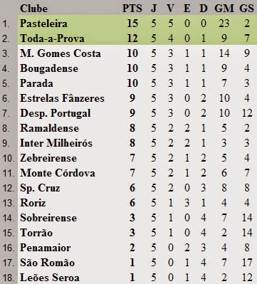 O Pasteleira continua a sua caminhada vitoriosa na Série 1 da 2ª Distrital. A equipa de Afonso Martins derrotou o Desp. Portugal por 1-4, naquele que foi o primeiro teste mais a sério para os portuenses, confirmando assim o estatuto de candidato à subida de divisão e também ao título de Campeão Distrital. A formação portuense é ainda o melhor ataque, com 23 golos marcados e a melhor defesa, com apenas dois golos sofridos. Destaque ainda para a vitória do Toda-a-Prova sobre o Sobreirense, permitindo assim à formação portuense, que se estreia nos campeonatos da AF Porto, ascender ao segundo lugar.