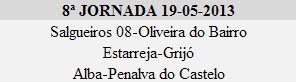 O Grijó continua a sonhar com a subida ao Campeonato Nacional de Seniores na próxima época. A equipa derrotou o Penalva do Castelo por duas bolas a zero e continua a ocupar a terceira posição sendo também um dos cinco melhores terceiros, o que dará acesso à subida. No jogo grande desta jornada o Salgueiros 08 bateu o Estarreja por duas bolas a zero e está agora a apenas um ponto do primeiro lugar.
