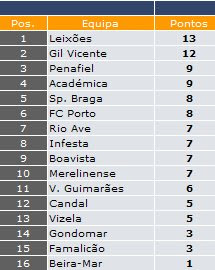 Os candalenses cairam para a 11ª posição, com os mesmos 15 pontos, equanto que o FC Porto continua a liderar, agora com 41.
