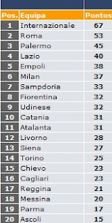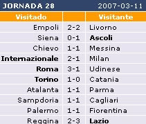 Em Itália, falta apenas decidir quem acompanha o Messina e o Ascoli na descida á Série B. E nessa posição estão 6 equipas: Catánia, Parma, Chievo, Siena, Cagliari e Reggina, são os candidatos a apenas um lugar. No topo da tábela, o Inter continua o seu passeiao trinufal, e desta feita despachou á Lazio por 4-3. Mas o jogo não foi fácil para os nerazzuri. Aos cinco minutos, á Lazio já vencía por 0-2, com golos de Pandev e Mutarelli. Mas eis que apareceu Hernan Crespo no jogo. Em quinze minutos, aos 20 e 35 minutos, o atacante argentino, que José Mourinho quer de volta ao Chelsea, bisou e deu a igualdade ao Inter. Mas já perto do intervalo, Ledesma voltou a dar vantagem aos romanos. Já nos minutos finais da partida, Crespo, voltou a marcar, consumando assim o hattrick na partida, e dando novamente a igualdade ao Inter, e Materazzi já nos minutos finais apontou o golo da vitória do Inter.O Parma, que parece querer sair dos lugares de despromoção, goleou o já despromovido Messina por 4-1, enquanto que o AC Milan não foi além de uma igualdade a um golo com o Catánia. A Roma, acabou derrotada pelo Torino, em casa.